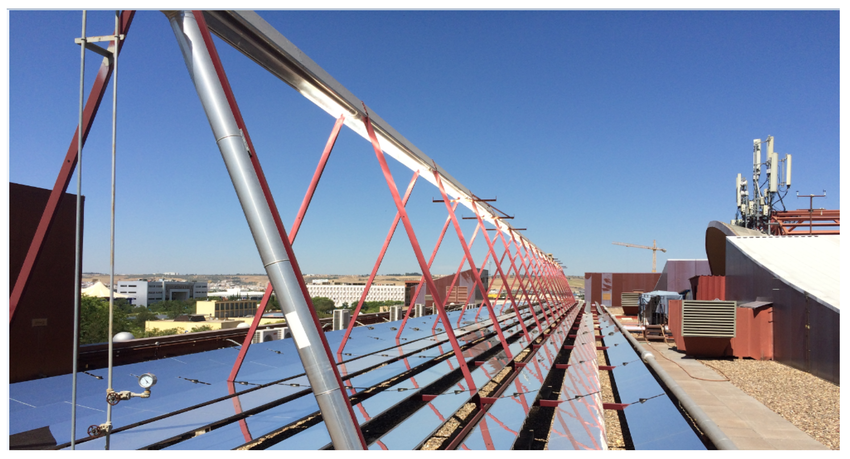 The Fresnel Collector is a linear concentrating solar thermal collector optimized for industrial applications. It can provide heat at up to 400°C and operate with pressures of up to 120 bars. Besides being operated with water, thermal oil or high-temperature glycol, it can also generate steam directly.